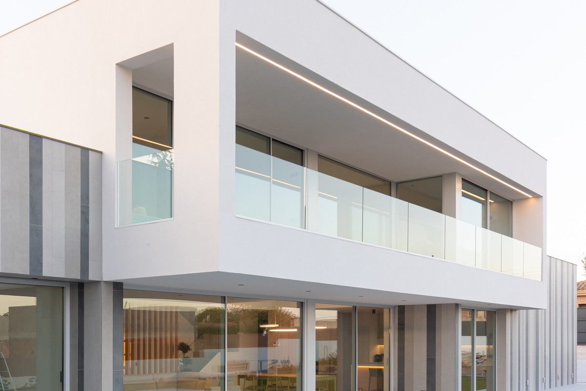 El solar, con una anchura de 16 m y una longitud de 30 m presenta una forma totalmente rectangular, con acceso por su fachada norte y delimitado por parcelas vecinas en sus otras tres caras. La volumetría de la vivienda responde directamente a la del solar, con la intención de construir el máximo de metros que la edificabilidad del terreno permite. Con unas dimensiones totales de 9,60 m de ancho x 19,27 m de largo y 7,00 m de altura, la vivienda está compuesta por una planta sótano destinada a garaje con 148 m2 útiles y capacidad para 4 vehículos.